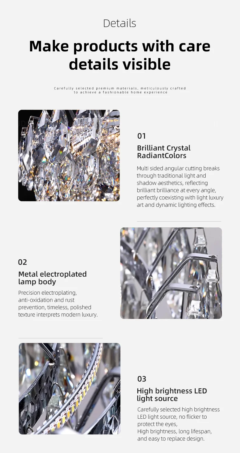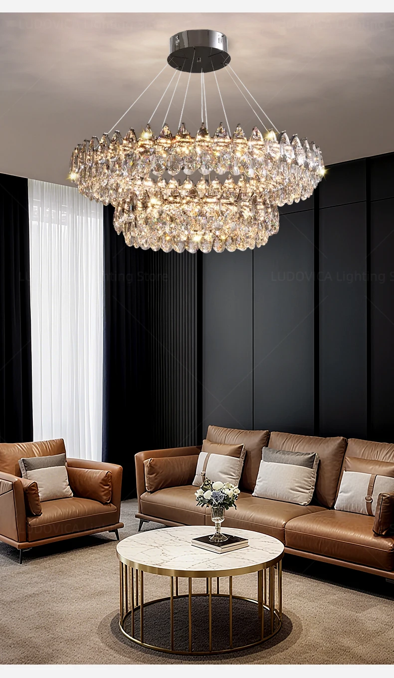 Crafted with care and contemporary design details, the Luxury Crystal Bedroom Chandelier adds depth, sparkle, and atmosphere to your home. Its refined silhouette reflects light beautifully, creating a calm and inviting setting. Whether you aim to refresh your décor or introduce a statement piece, this Bedroom Chandelier delivers reliable performance and timeless appeal.