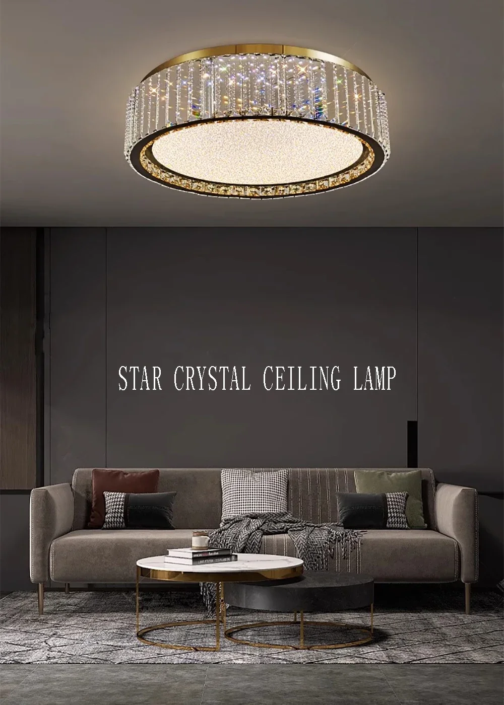 Crafted with high-quality materials, the lamp offers durability, long-term reliability, and consistent light distribution. Its crystal detailing enhances light reflection, creating a warm and inviting ambiance without overpowering the space. The compact ceiling-mounted design makes it especially suitable for rooms with standard or low ceiling heights.