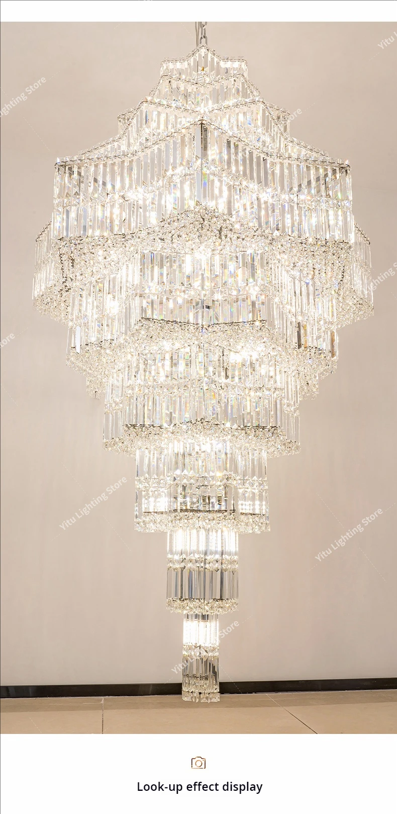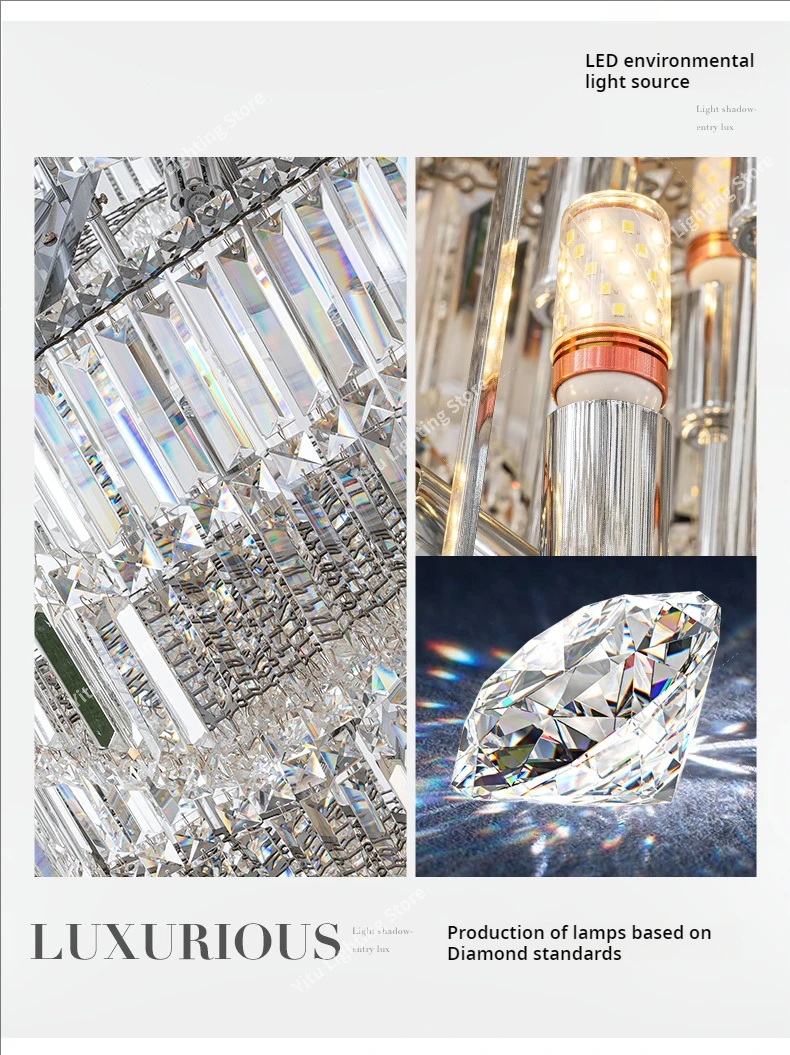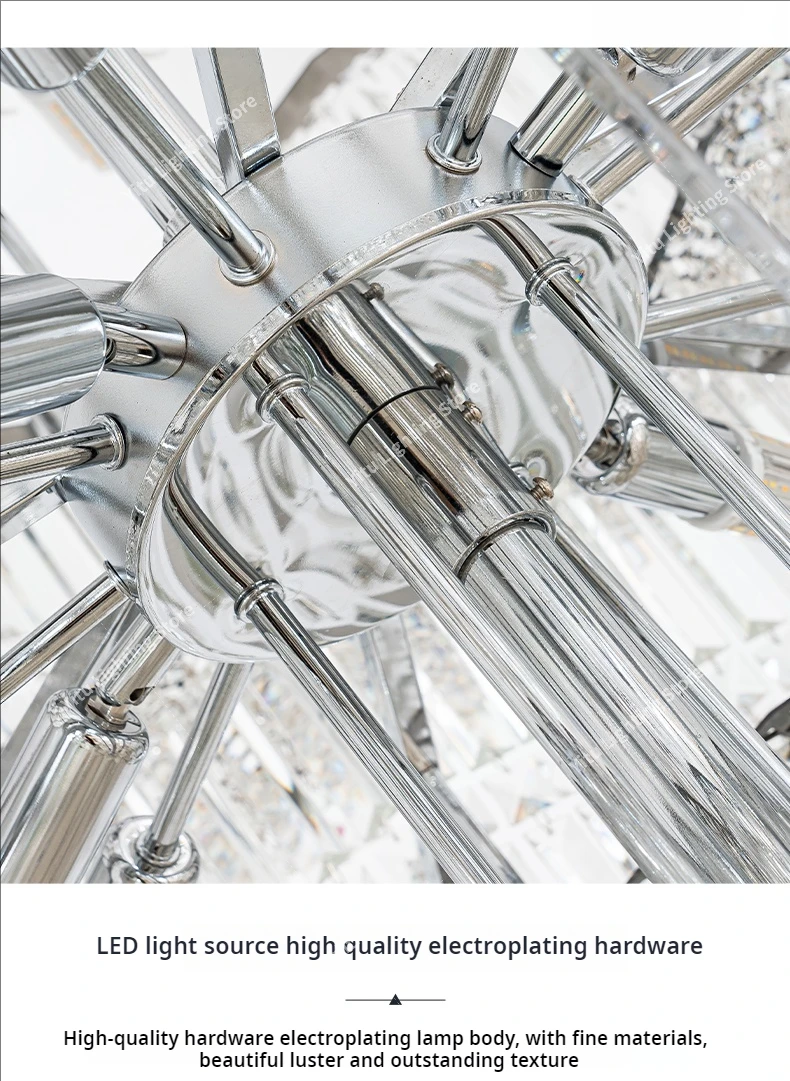 This Large Chandelier is designed for homes with high ceilings, duplex layouts, and open mezzanine spaces. It delivers a striking modern look and creates a luxury focal point for any villa interior. The crystal details and contemporary frame provide bright, even lighting while remaining elegant and timeless.
