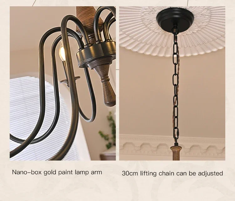 This Nordic Retro chandelier is more than a light fixture—it is a statement of design and craftsmanship. The combination of solid wood and retro styling creates a welcoming atmosphere while ensuring long-term reliability.