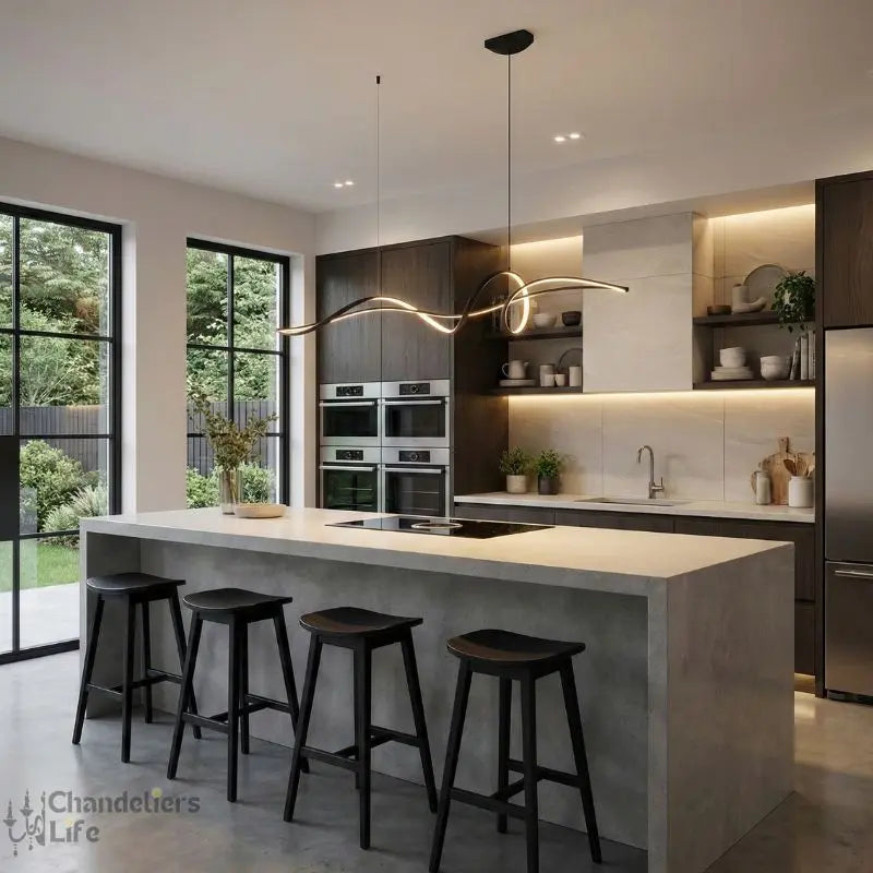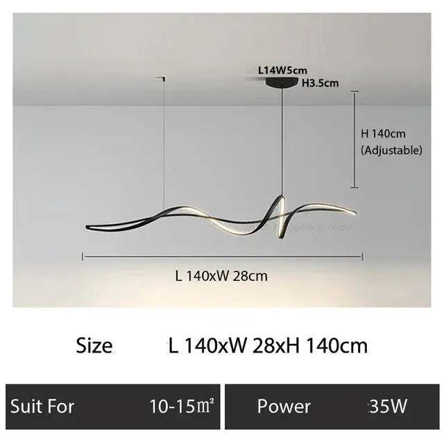 The Ribbon Shape Design Dining Island LED Chandelier brings modern elegance to any home. This slim and artistic LED chandelier creates a soft glow that enhances dining spaces, kitchen islands, and open-plan rooms. Its sculptural silhouette makes it a standout feature while providing efficient LED illumination.