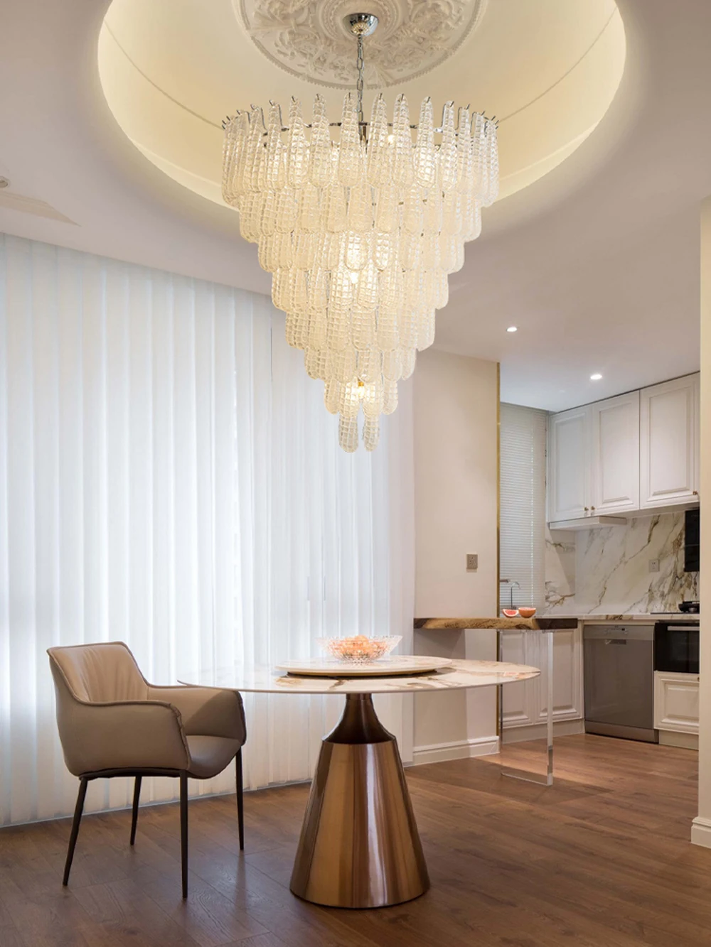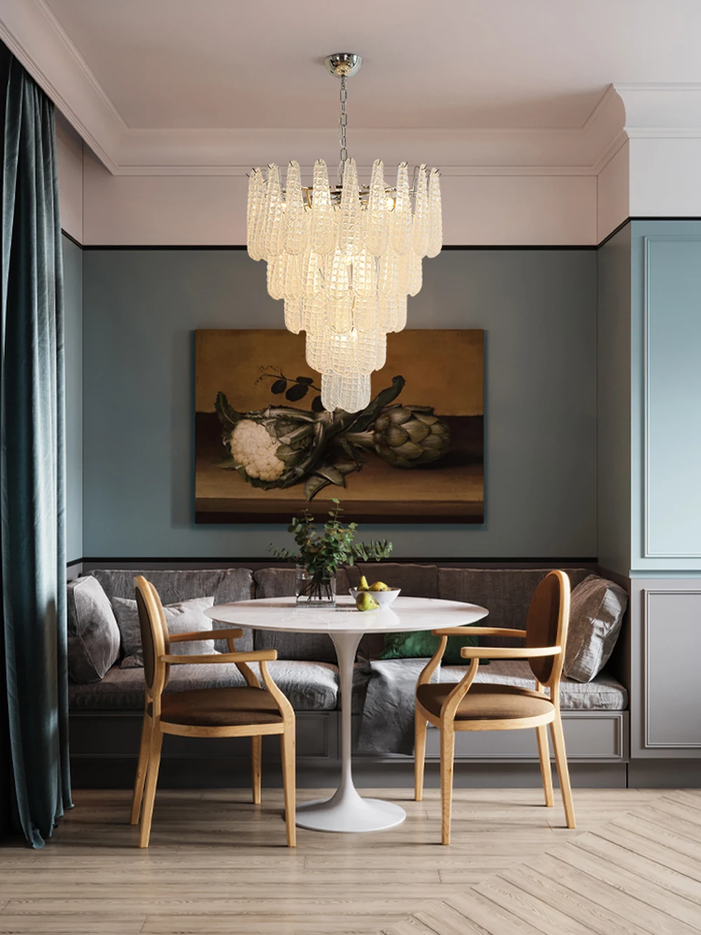 The Glass Leaf Pendant Light is a refined lighting solution designed to elevate modern and contemporary interiors. Inspired by organic leaf shapes, this pendant light features delicately crafted glass elements that diffuse light softly and evenly. The Glass Leaf Pendant Light creates a warm, welcoming atmosphere while acting as a decorative focal point. Ideal for living rooms, dining areas, bedrooms, and boutique hotel spaces, it balances elegance with functionality. Its sculptural design pairs beautifully with both neutral and luxury interiors, making it a versatile choice for stylish homes.