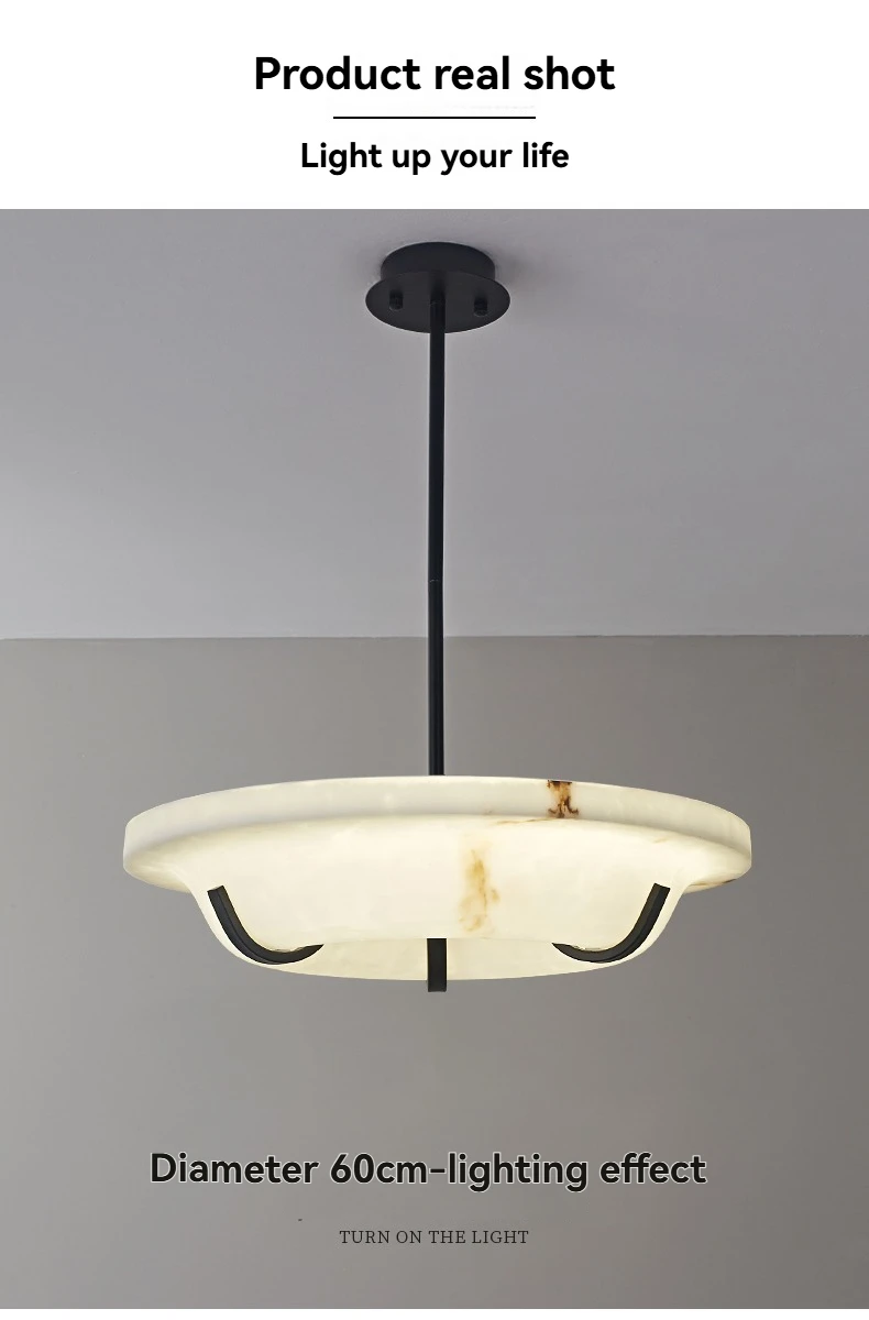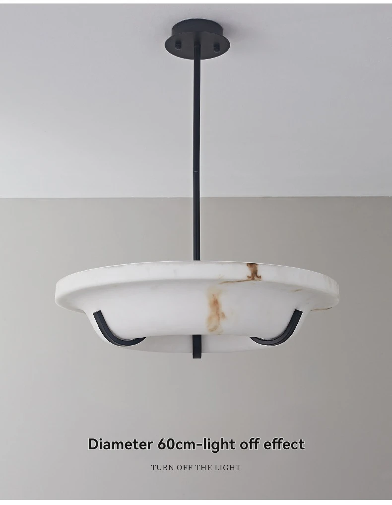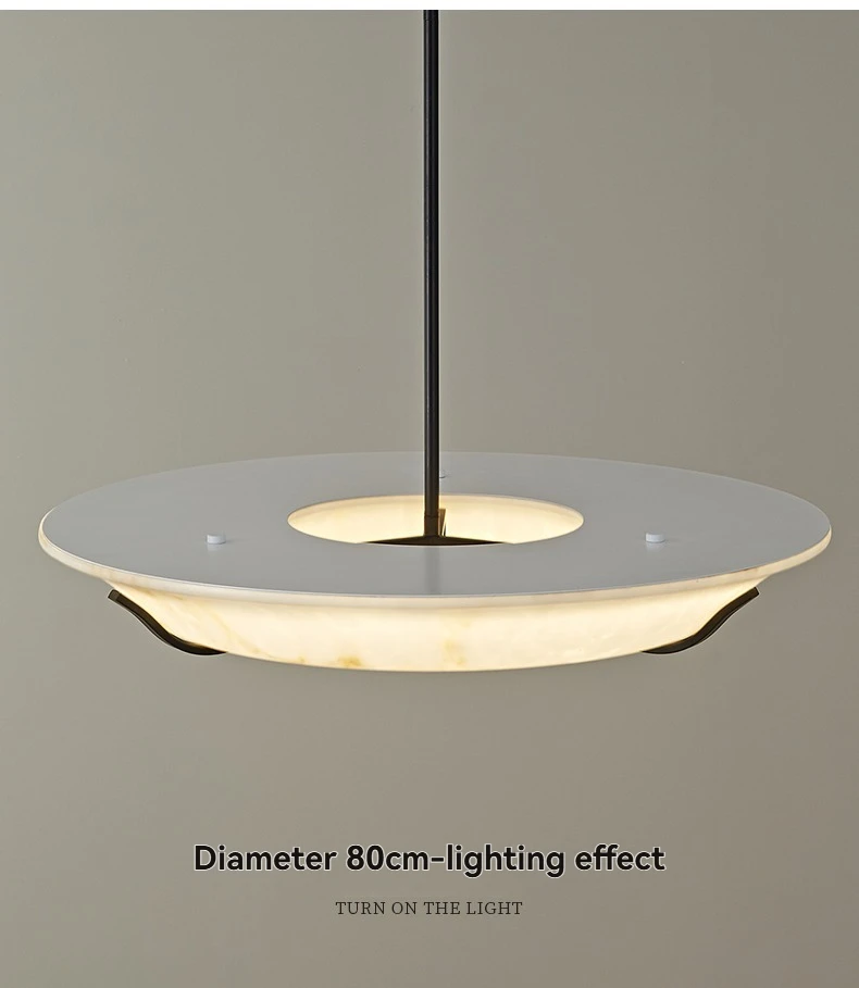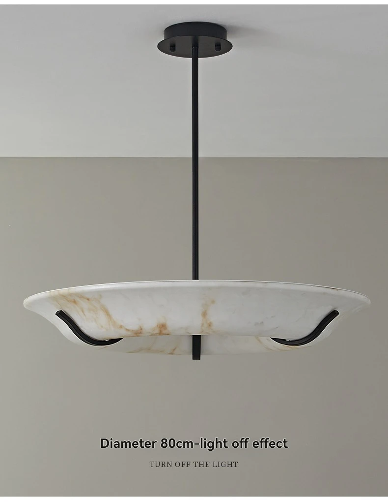 The beauty of this Alabaster Ring Chandelier lies in its ability to diffuse light evenly. Alabaster naturally softens illumination, creating a luxurious glow rather than harsh brightness. This makes it ideal for upscale interiors where ambiance matters as much as function.